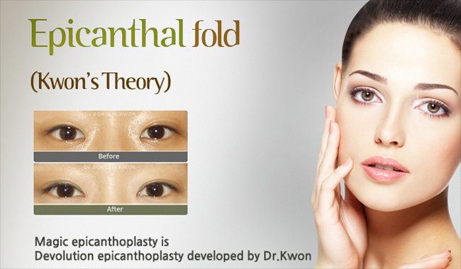 Although it has been reasoned that combined epicanthoplasty is helpful in Asian double eyelidplasty, there has not been clear understanding about epicanthal fold, resulting in controversies for solution. There have been so many epicanthoplasty methods developed in its early days, which are mostly based on skin flap concept. Currently using methods are combined technics including skin excision, z-plasty, myotomy or myectomy of preseptal orbicularis muscle, skin redraping, plication of medial canthal ligament and so on. The development of incomplete methods were unavoidable without understanding about true nature of the epicanthus. As the clinical significance of the epicanthus is mainly related with Asian double eyelidplasty, essential epicanthoplasty should be a key to plastic surgeons for choice of all the type of double eyelid including high outfold type(parallel type). But, there has not yet been a potent epicanthoplasty method which deserves universal solution for Asian double eyelidplasty. So we developed Kwon's method based on devolutional concept.